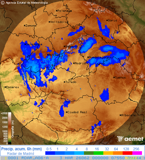 Radar de Madrid - Precipitacion acumulada en 6 horas